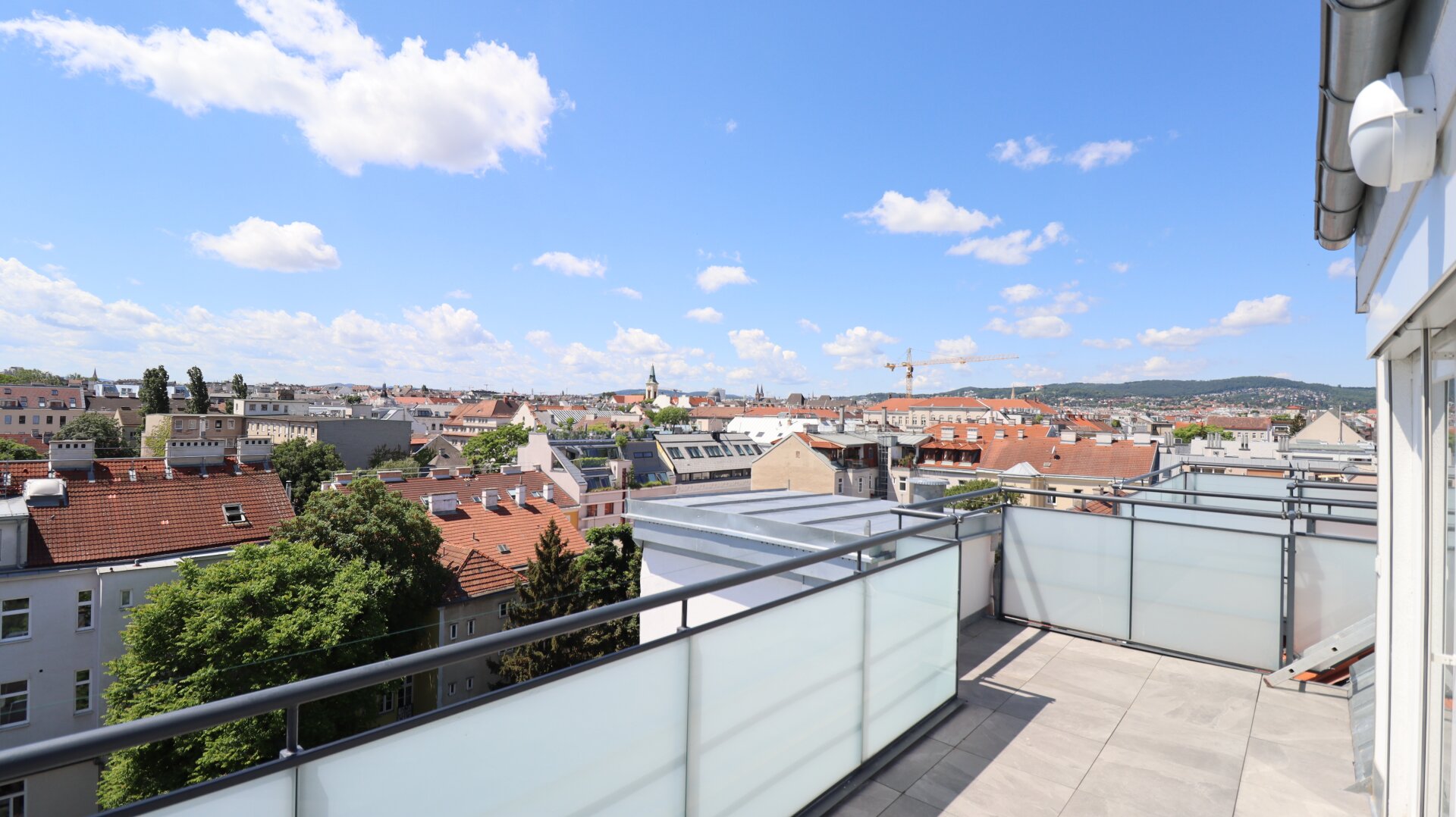 Dieser als Familienwohnung sehr gut geeignete Erstbezug erstreckt sich auf zwei Ebenen, die jeweils über eine große, sonnige Terrasse verfügen. Die Außenflächen sind Ost-Süd-West ausgerichtet und bieten einen großartigen Blick über die Dachlandschaften hinweg, von der Innenstadt mit den Türmen des Stefansdom und der Votivkirche bis zum Kahlenberg.