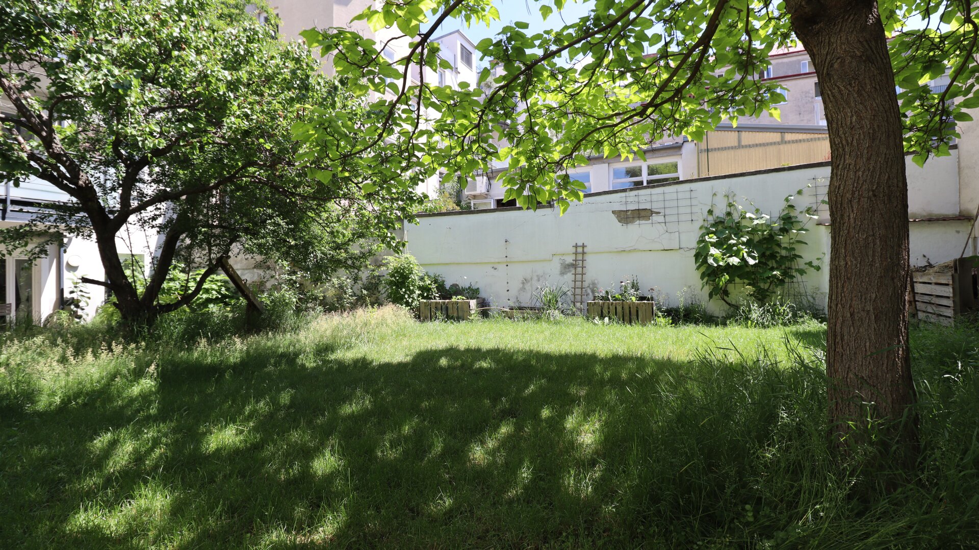 Ein ganz besonderes Plus ist der Gemeinschaftsgarten an der Südseite des Wohnhauses. Eine kleine Stadtidylle mit Wiese und Bäumen, die für Kinder ideal ist, aber auch Gartenaktivitäten zulässt.