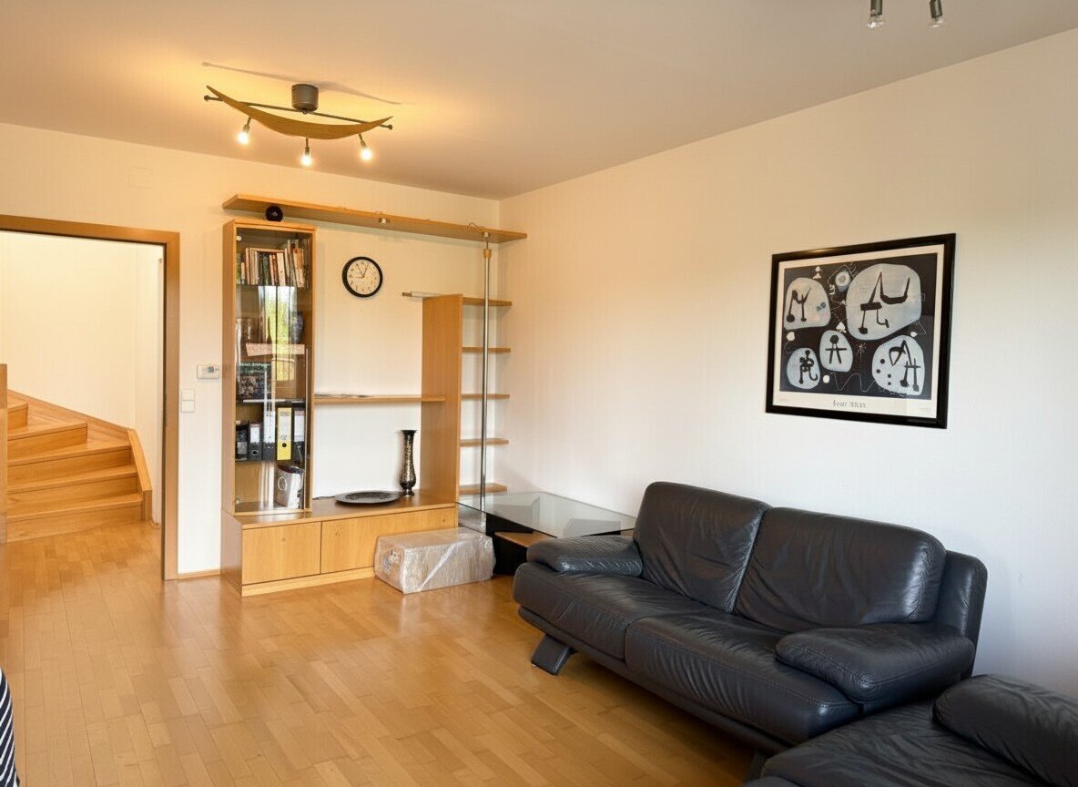 Diese sonnige Maisonette bietet auf zwei Etagen zwei Badezimmer, eine große Terrasse, drei Schlafzimmer, ein Wohnzimmer sowie eine Wohnküche.