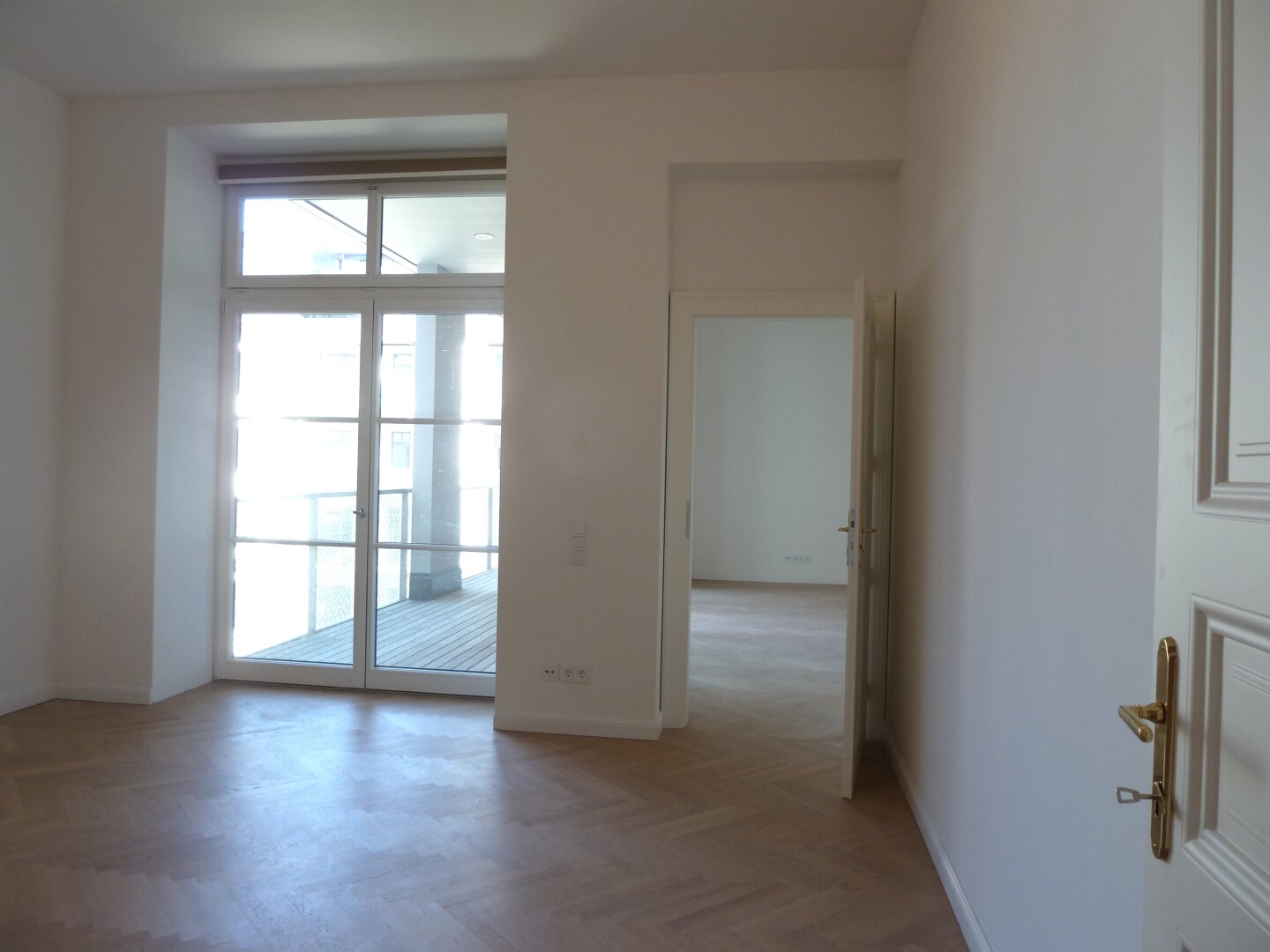 Die Ausstattung der Wohnung ist hochwertig; massive Parkettböden, Messing-Beschläge, Designer-Küche (Miele-Geräte), Fußbodenheizung, Deckenkühlung, elektrisch steuerbare Jalousien, Video-Sprechanlage, große Glasfronten.