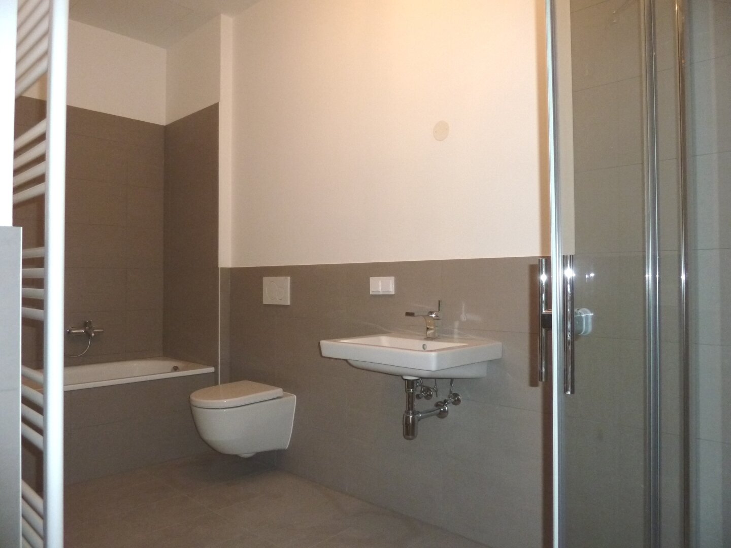 Die Wohnung liegt im dritten Geschoss und ist nach Süden ausgerichtet. Großzügigkeit und Helligkeit prägen das Wohngefühl. Der Eingangsbereich, mit Platz für eine Garderobe und einem danebenliegenden Abstellraum/Wirtschaftsraum, führt in den zentralen, großen Wohnraum, hier wird gekocht, gegessen und entspannt. Eine breite Glasfront lässt auf die überdachte Terrasse und Parkbäume blicken. Die Größe der Außenfläche ermöglicht es in der warmen Jahreszeit diesen Platz, ob zum Essen oder Relaxen, optimal zu nutzen. Die Wohnung verfügt über zwei weitere Räume, jeweils mit begehbarer Garderobe und eigenem Bad.